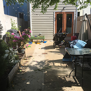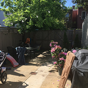 Goal:Our clients loved their cozy and historic Washington rowhome, but they hated their “concrete jungle” backyard. With a toddler and a dog recently added to the family, they needed a space everyone could enjoy, with a mixture of greenery and natural stone. A secondary goal was to preserve space for a future shed, and a parking pad for a car.